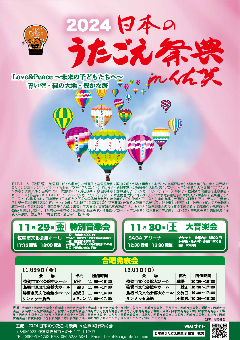 日頃より、うたごえ運動にご理解とご協力をいただき、誠にありがとうございます。 日本のうたごえ祭典は、全国規模の音楽祭典として、1953 年以来、全国各地で開催されてきました。そして2024 年は佐賀県にて開催いたします。