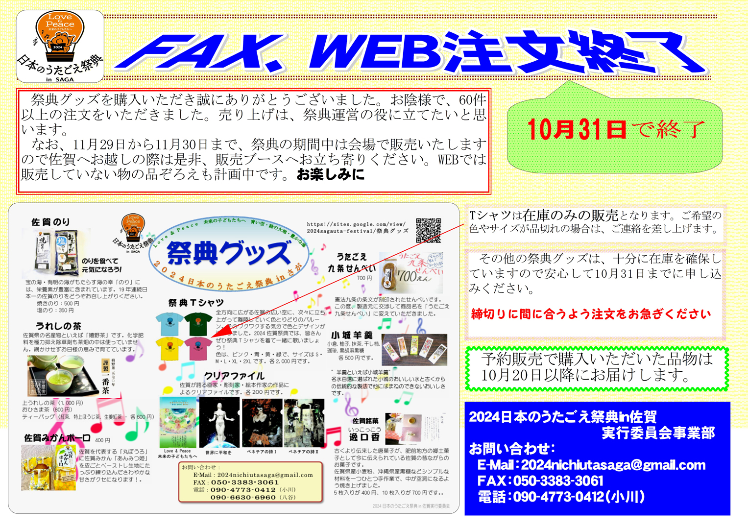 | 2024年10月31日 | 祭典グッズのWEB販売は終了しました。祭典へのご協力ありがとうございました |
