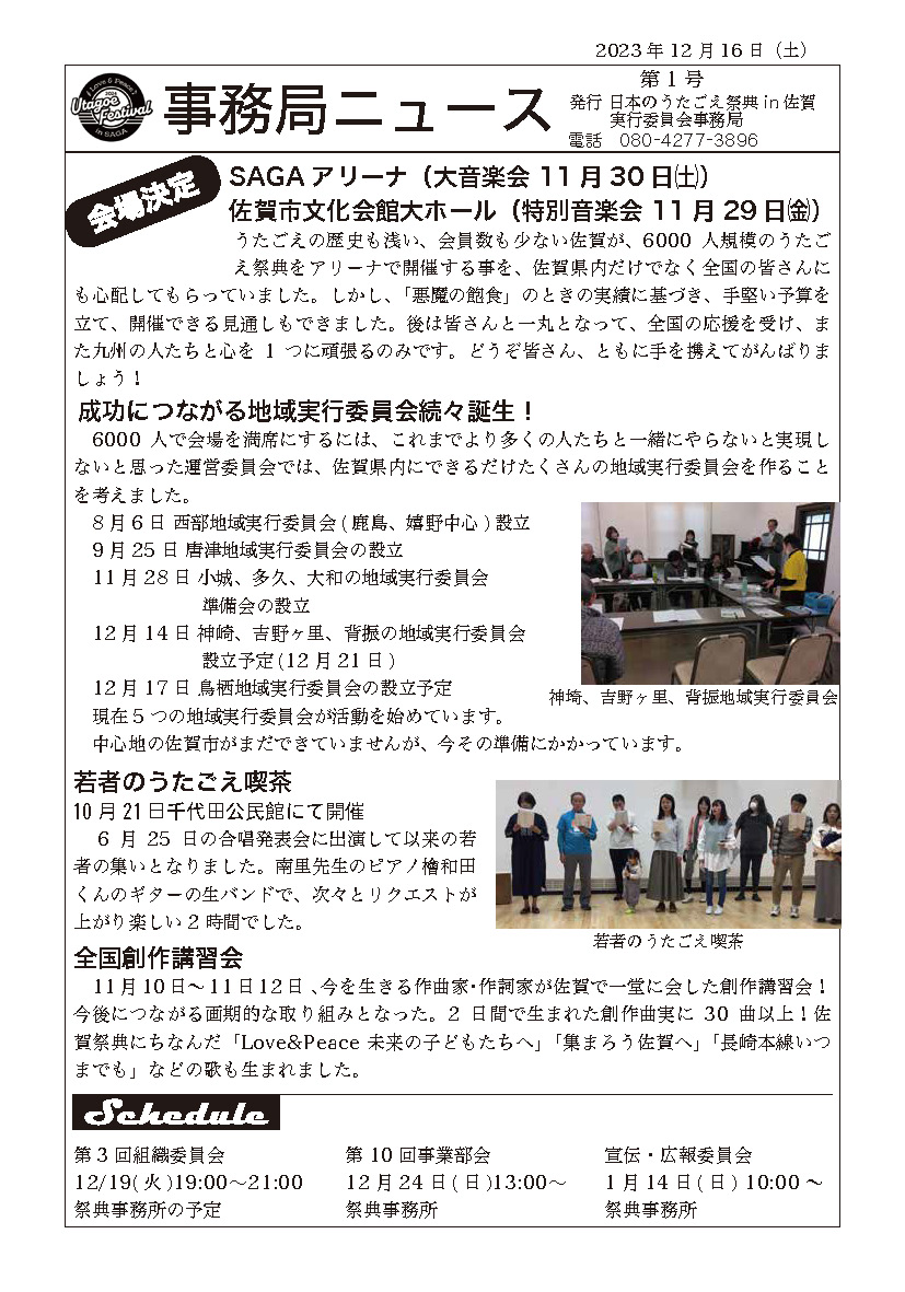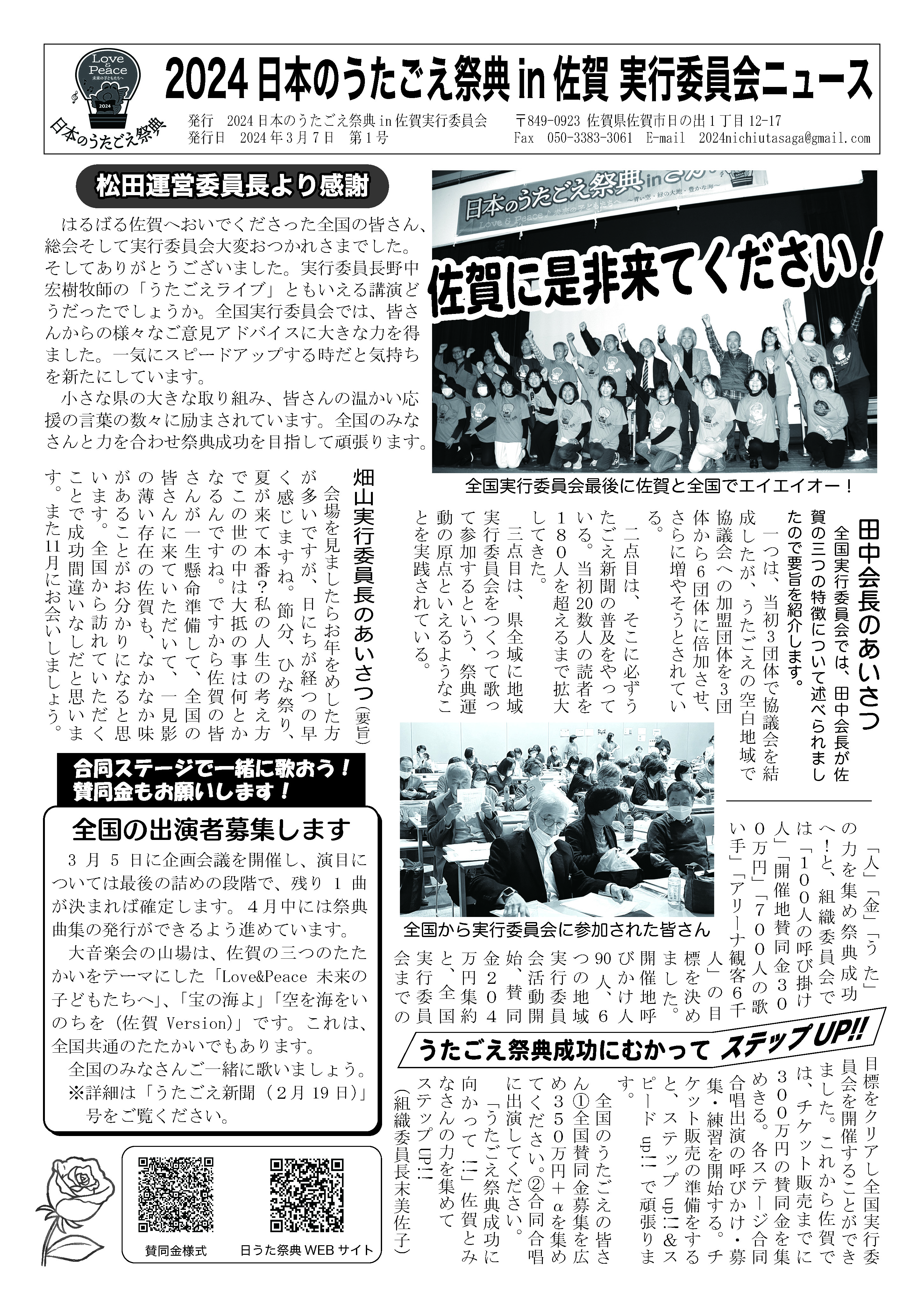 特別音楽会・大音楽会の企画案、畑山敏夫実行委員長のメッセージを掲載しています。