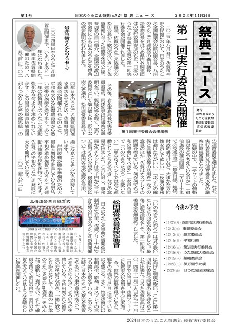 第2回実行委員会の様子と、野中宏樹実行委員長のあいさつ、音楽会企画案を掲載しています。