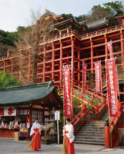 四季を通じて行事があり、12月の「お火たき」神事は、来る年の幸せを願う多くの人々で大変賑います。外苑は桜・つつじ・藤などの花の名所として、憩いの場所となっています。また高台の奥の院からの見渡す絶景は、まるで神様からの贈り物??『癒し』の場です。